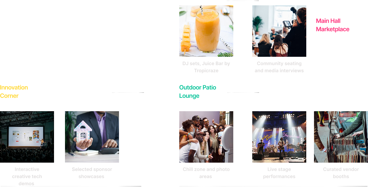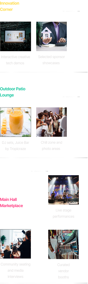 Explore a dynamic 5,000 sq ft venue divided into three vibrant zones — each offering unique experiences for culture, creativity, and connection.